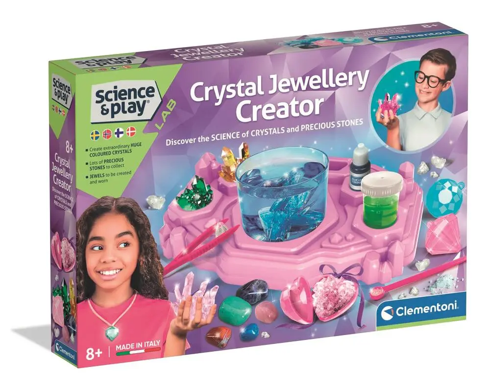 Dette lav-selv kit lader børn lave smykker med små, farverige krystaller. Følg trinene, se krystallerne vokse og design unikke halskæder, ringe og armbånd på en anderledesm sjov og lærerig måde.