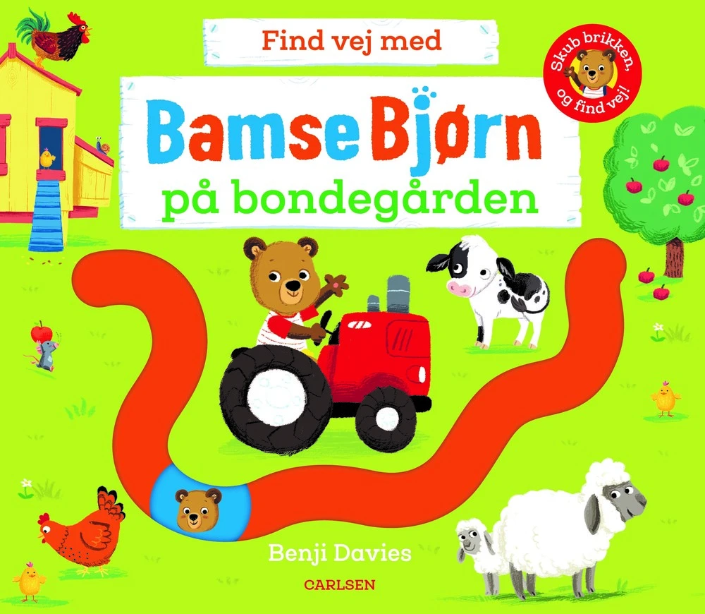 Tag med Bamse Bjørn på bondegårdsbesøg, og hjælp ham med at finde vej! På hvert opslag skal barnet bruge sin finger til at skubbe en brik afsted, så motorikken trænes, og Bamse Bjørn hjælpes på vej.I samme serie:Find vej med Bamse Bjørn på byggepladsenFra