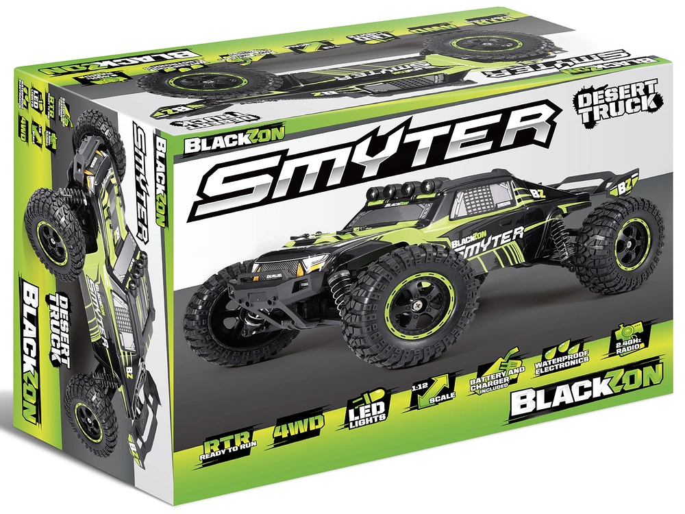 BlackZon Smyter 1/12. BlackZon Smyter er perfekt til at få en smagsprøve for at kører med fjernstyrede biler, med 4WD, uafhængig dobbelt bærearmsophæng, justerbare støddæmpere og 4-gears differentialer både for og bag - klatrer Smyter over al slags terræn