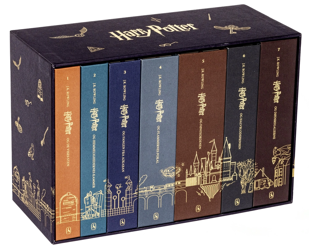 Nyt eksklusivt bokssæt Vi fejrer 25-års jubilæet for den første danske udgave af hele verdens mest elskede troldmand Harry Potter med et smukt og eksklusivt bokssæt, der er tilgængeligt i et begrænset oplag.  I 25 år har Harry Potter-universet fortryll