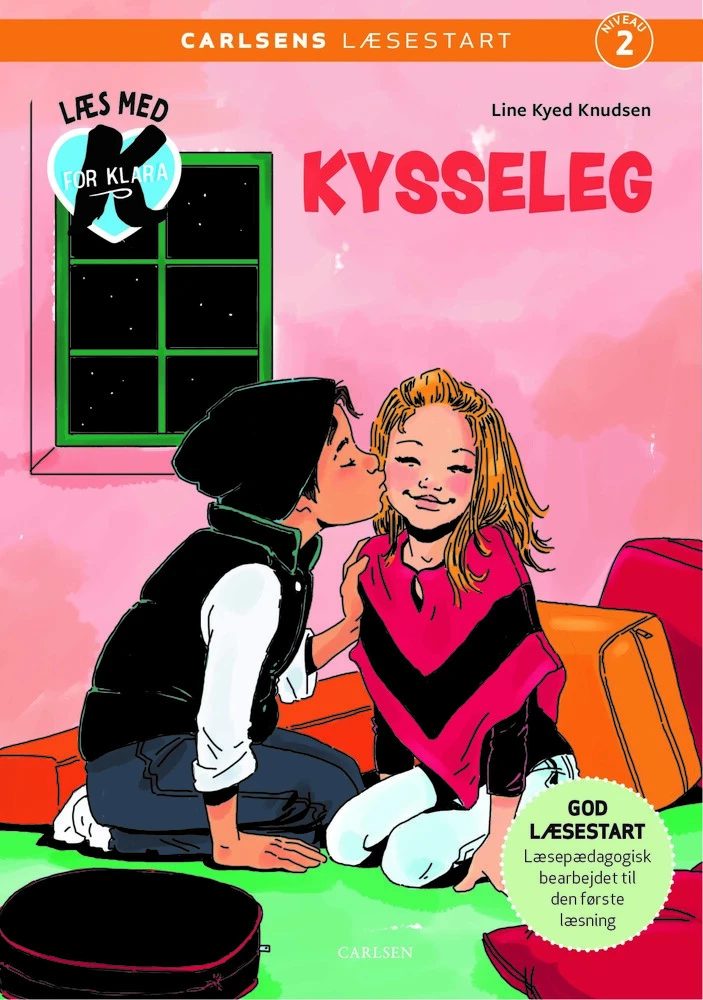 Lær at læse med K for Klara.Klara og hendes veninder leger kysseleg i puderummet sammen med drengene. Klara vil gerne kysse med Lukas. Og selvfølgelig ikke med tungen, som Julie gør. Men pludselig vil Store-Anders være med, og så synes Klara ikke, det er