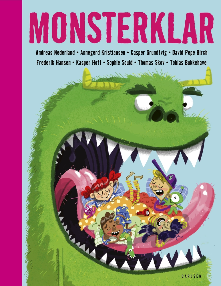 Monsterklar er 10 sjove historier til børn på seks til otte år, der er klar på at grine og gyse på samme tid. Hør historien om drengen Aksel, der på ingen måde tør at gå ned i kælderen for at hente toiletpapir til sin far, der sidder og venter. Eller pige