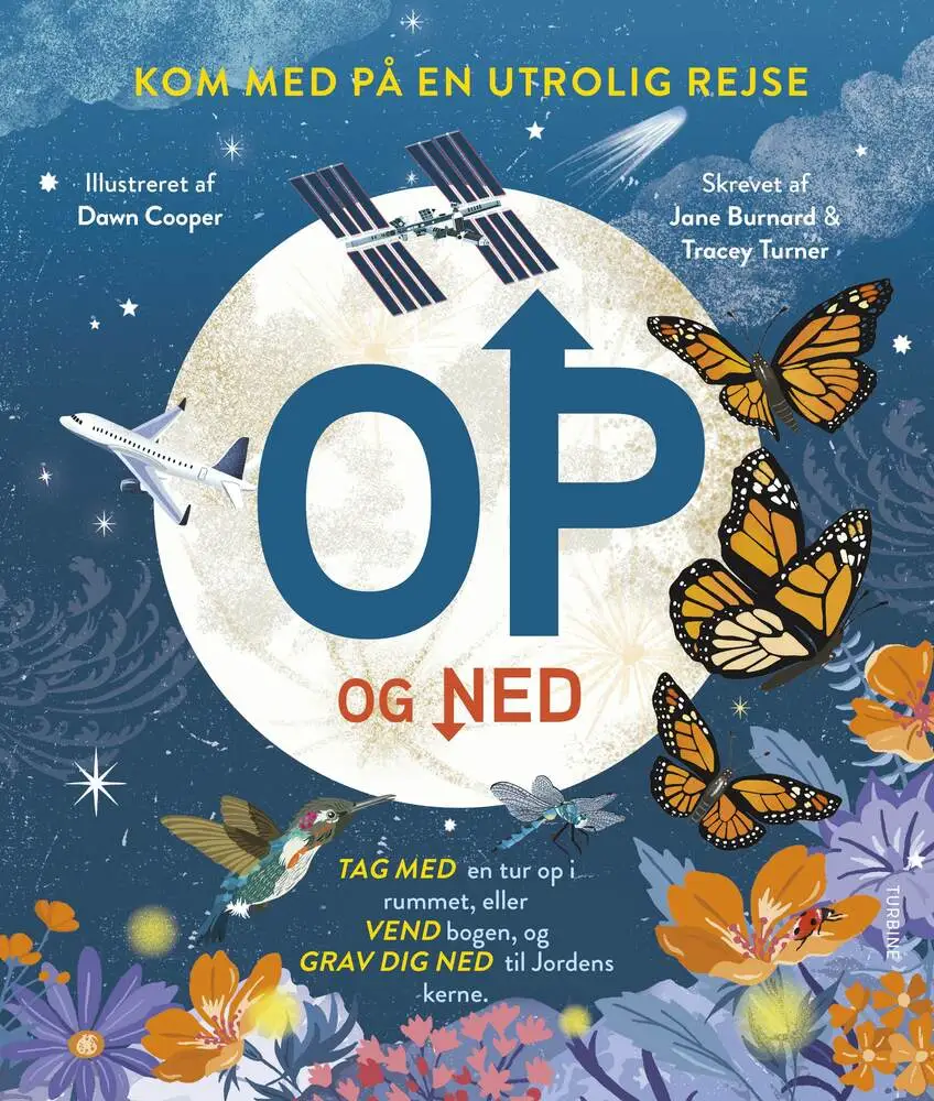 I denne bog kan du både rejse OP og NED. Tag med en tur OP i rummet, hvor du kan flyve sammen med verdens hurtigste fugl, besøge astronauter på Den Internationale Rumstation og se Mælkevejen oppefra. Eller vend bogen og grav dig NED til Jordens kerne, hvo