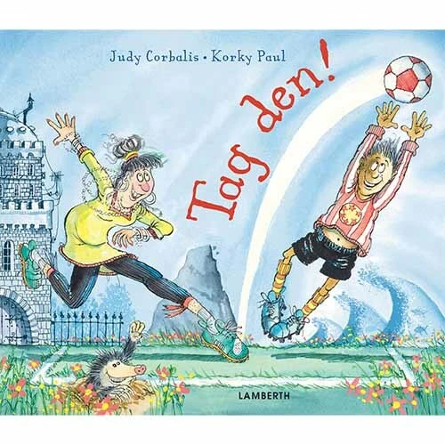 Tom og Farmor er i parken for at spille fodbold. De skiftes til at stå på mål og skyde straffespark. Da det er Farmors tur, giver hun den hele armen: 'Tag den...!' råber hun, men det er lettere sagt end gjort ... Sjov fodboldbog, hvor bolden sus