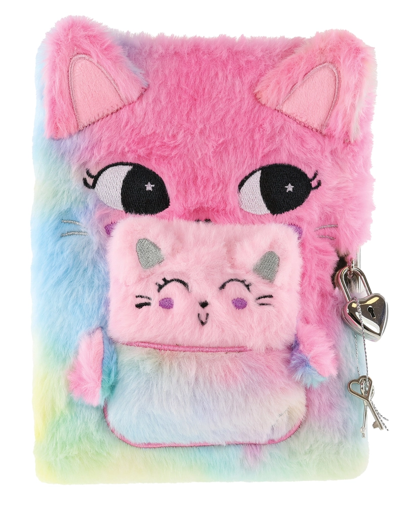 Dagbog fra Tinka med sødt motiv med kat med baby og blødt plysomslag. Dagbogen kommer med lås og tilhørende nøgler formet som et hjerte.